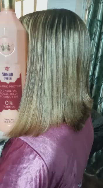 Samar Queen is a Brazilian keratin treatment that is used in hair-smoothing treatments that temporarily coat the outer layer of the hair to smooth the hair, remove frizz, enhance shine and decrease blow-drying time. you will get more of a smoothing and deep-conditioning effect with a keratin treatment ... as it contains less harsh chemicals and silicone, which weigh down the hair and clog the scalp. Formaldehyde free and you wash it in the same day. 100% straightening of curly hair & 100% treatment.